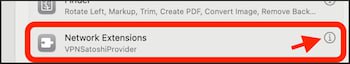 - Если окно не появляется, это можно сделать вручную. Зайдите в Системные настройки → Основные → Объекты входа и расширения → Сетевые расширения.